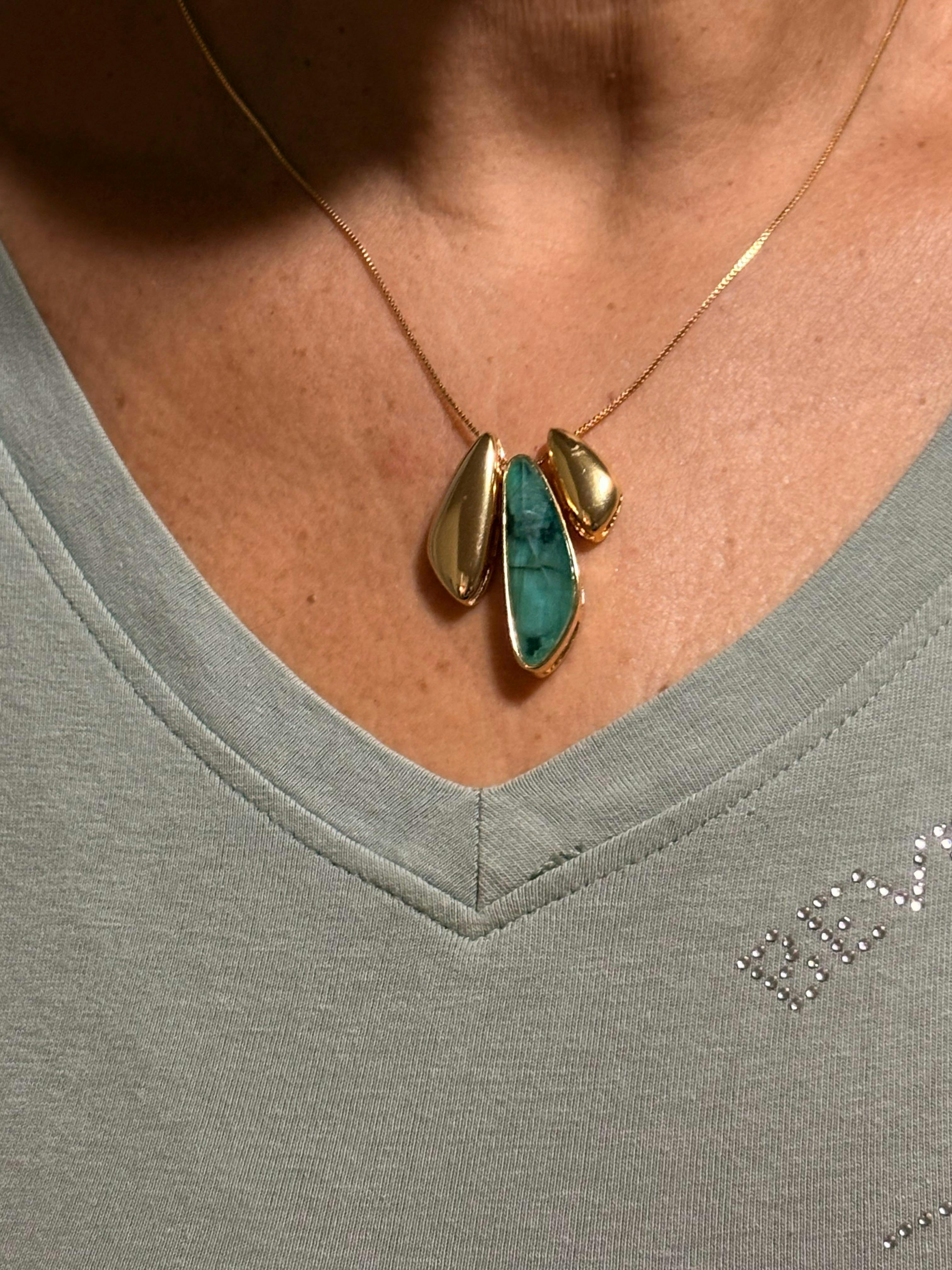 Shine with ocean-inspired elegance. This 18K gold-plated bracelet features two natural abalone or sea opal nautilus gemstones with stunning iridescent color and unique organic shapes. The polished gold finish and modern open-design setting make it a bold yet refined accessory for everyday outfits or special occasions.