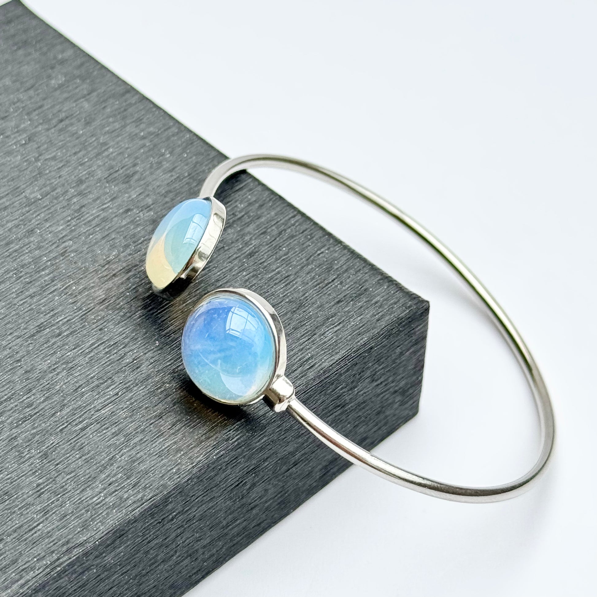This rhodium-plated bracelet features a lustrous pearl opaline stone, combining durability with refined elegance. The rhodium plating ensures long-lasting shine and resistance to tarnish, while the pearl opaline adds a subtle, sophisticated glow.