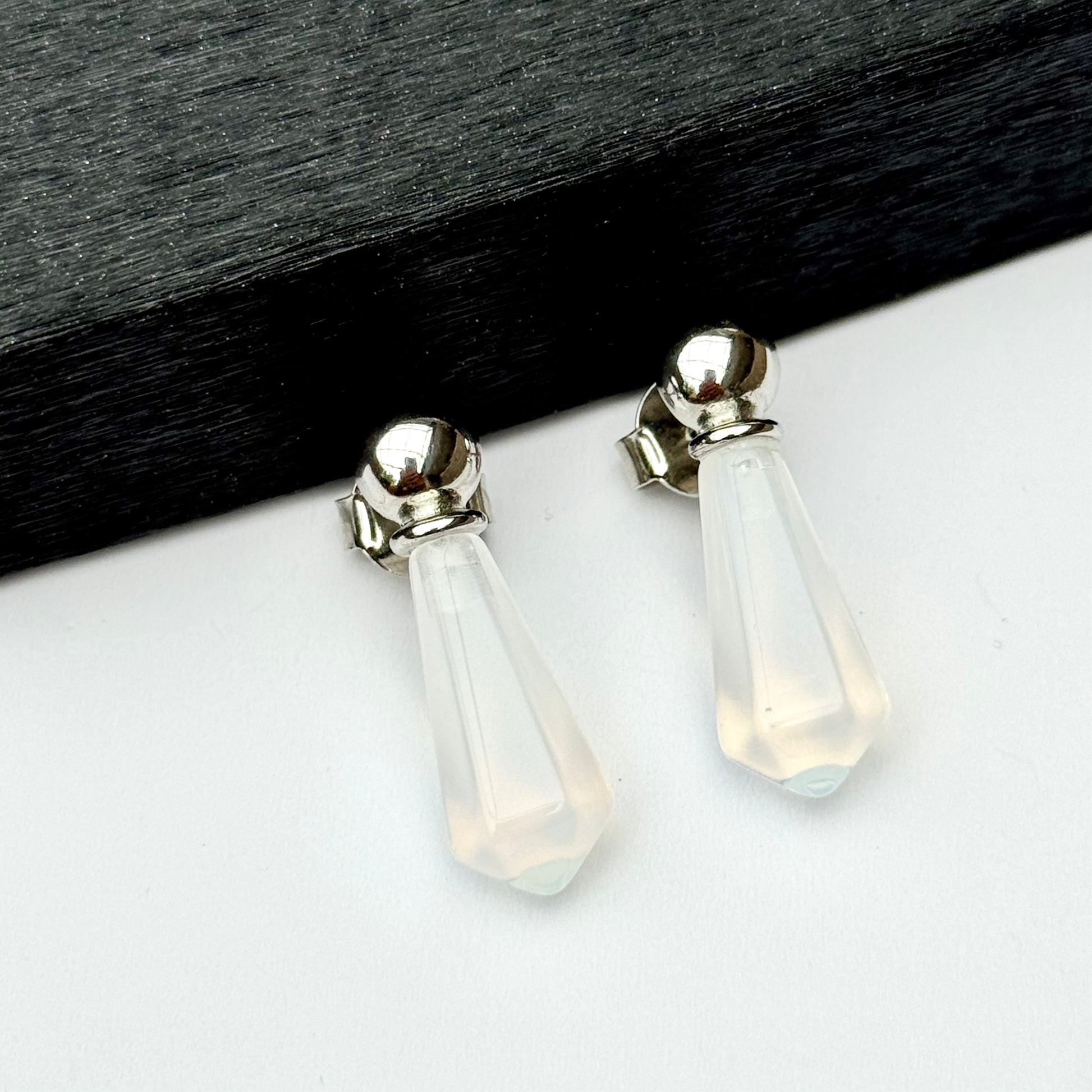 This rhodium-plated drop earring pair features a delicately crafted opaline stone, combining timeless elegance with subtle sophistication.
